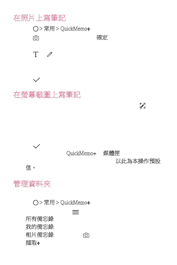 所有備忘錄:查看 QuickMemo+ 中所有儲存的筆記。