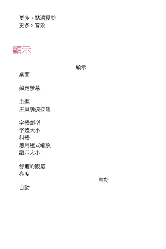 更多 點選震動:設定裝置在您點選螢幕項目時震動。