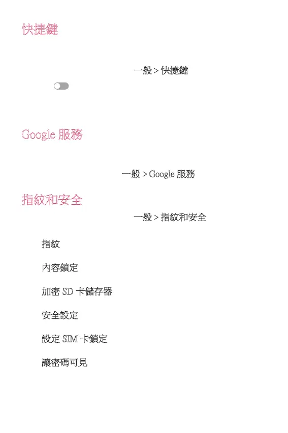 指紋:使用您的指紋為螢幕或內容開鎖。有關詳細資