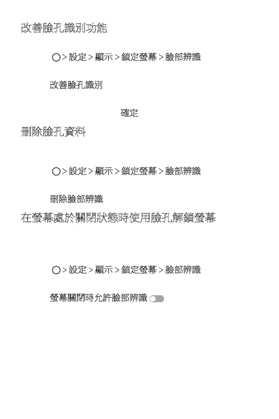 點選 設定 顯示 鎖定螢幕 臉部辨識。
