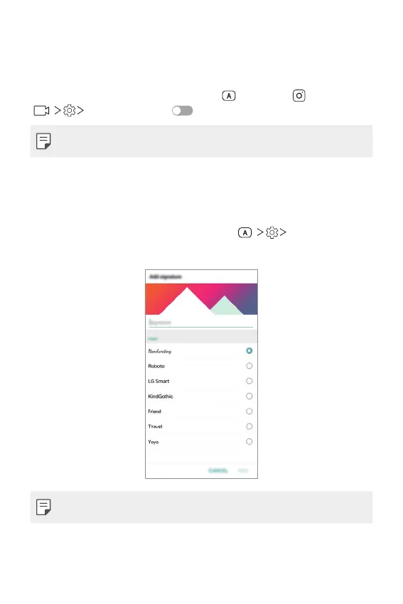 Launch the Camera app, then tap AUTO ( ) Add signature.