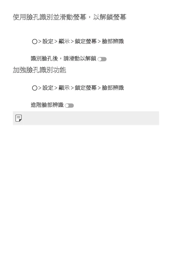 螢幕關閉時,您可以執行臉孔識別並滑動螢幕,以解鎖螢