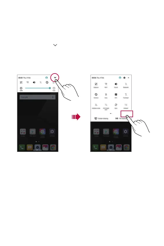 • To open the quick access icons list, drag the notifications panel