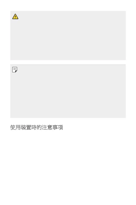 • 在裝置充電時使用裝置可能會導致電擊。使用裝置時,請