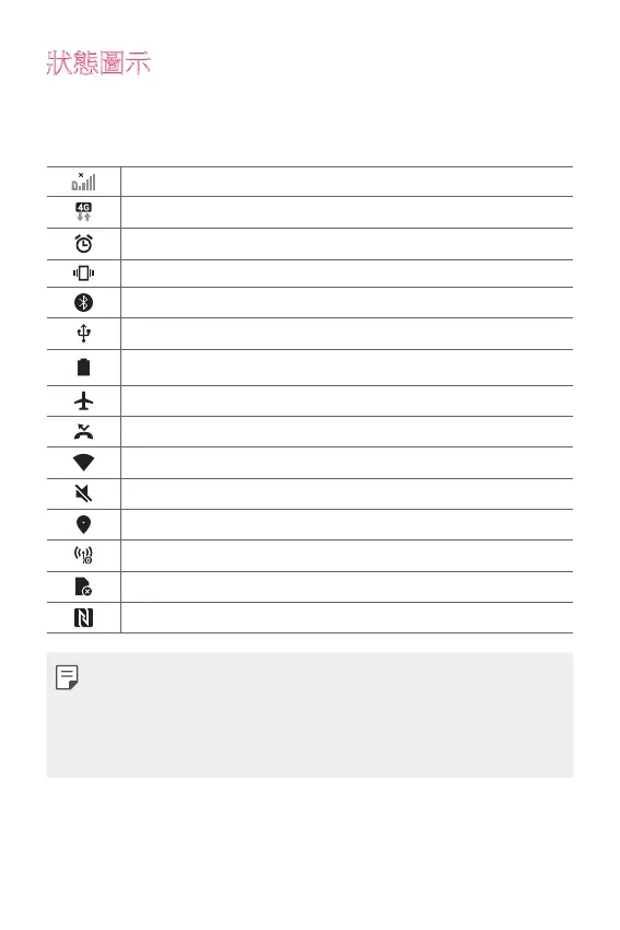 顯示的圖示可能會有所不同,具體視乎區域或服務供應商