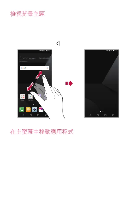 要返回到顯示應用程式和小工具的原始螢幕,在主螢幕中