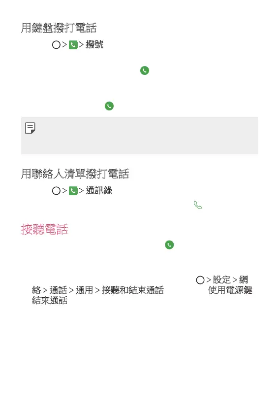 通話 通用 接聽和結束通話,然後開啟使用電源鍵