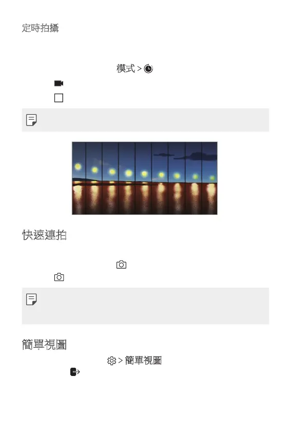 您可以按設定間隔拍攝連續畫面,來記錄緩慢發生的變化,