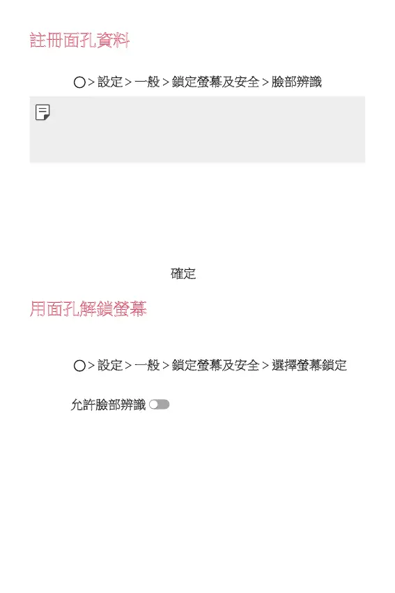 點選 設定 一般 鎖定螢幕及安全 臉部辨識。