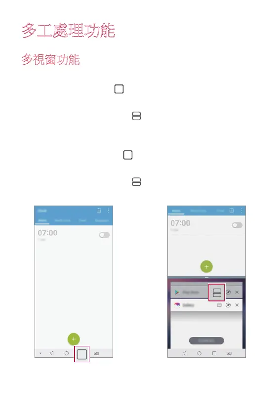 點選想要應用程式頂部的 ,以使用多重視窗功能。