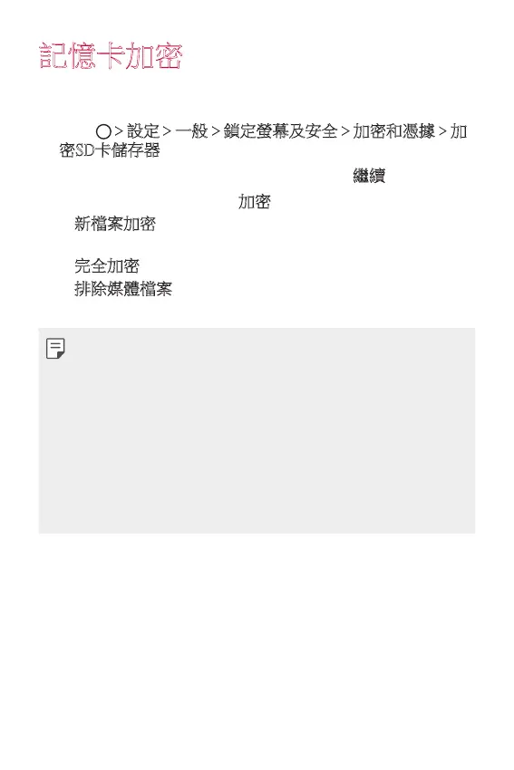 加密的記憶卡無法在其他 LG 裝置中使用。如要在其他流
