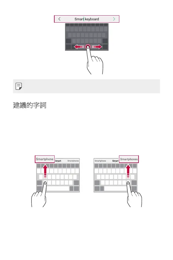 輸入文字,然後點選建議的字詞或輕輕向上拖動鍵盤的左側