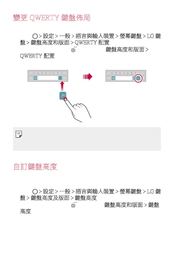 點按 設定 一般 語言與輸入裝置 螢幕鍵盤 LG 鍵
