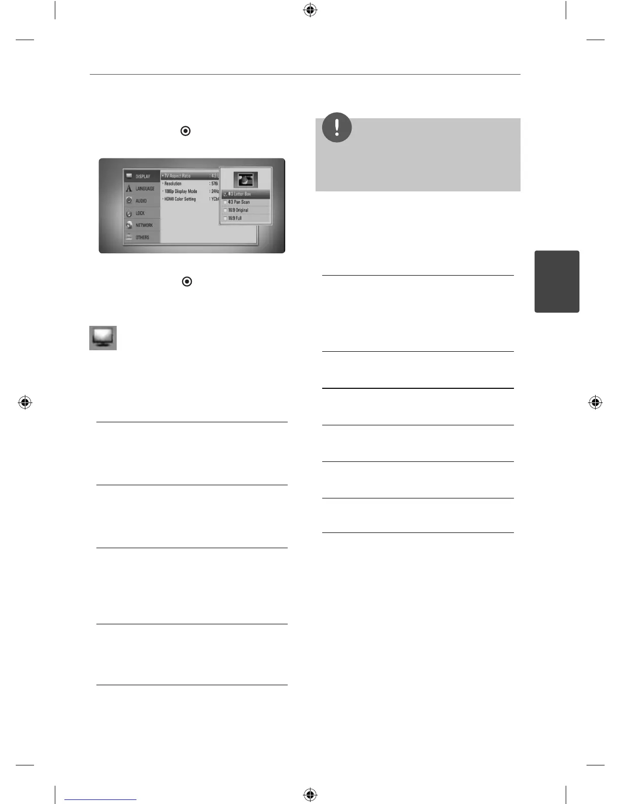 Select a TV aspect ratio option according to