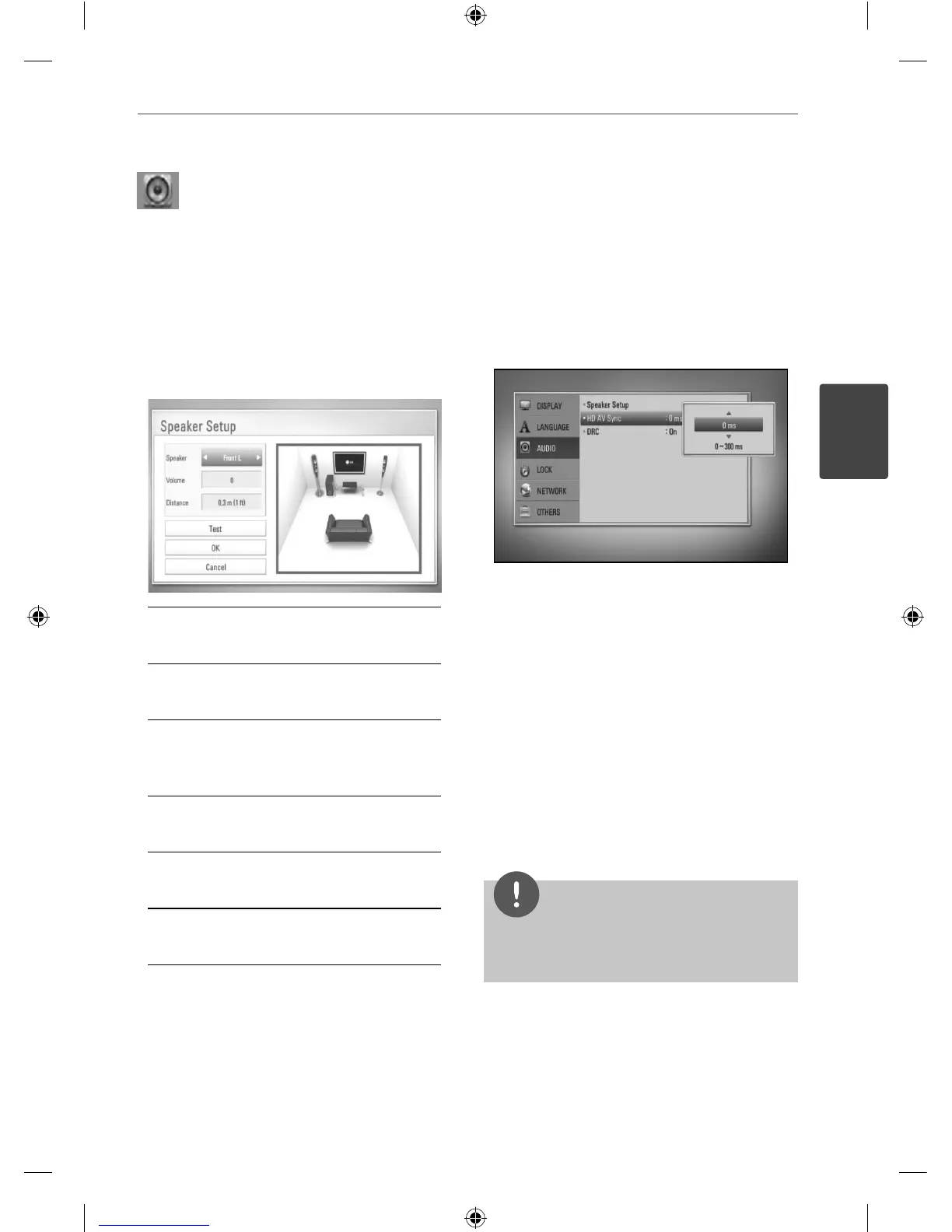 speaker setup display to specify the volume