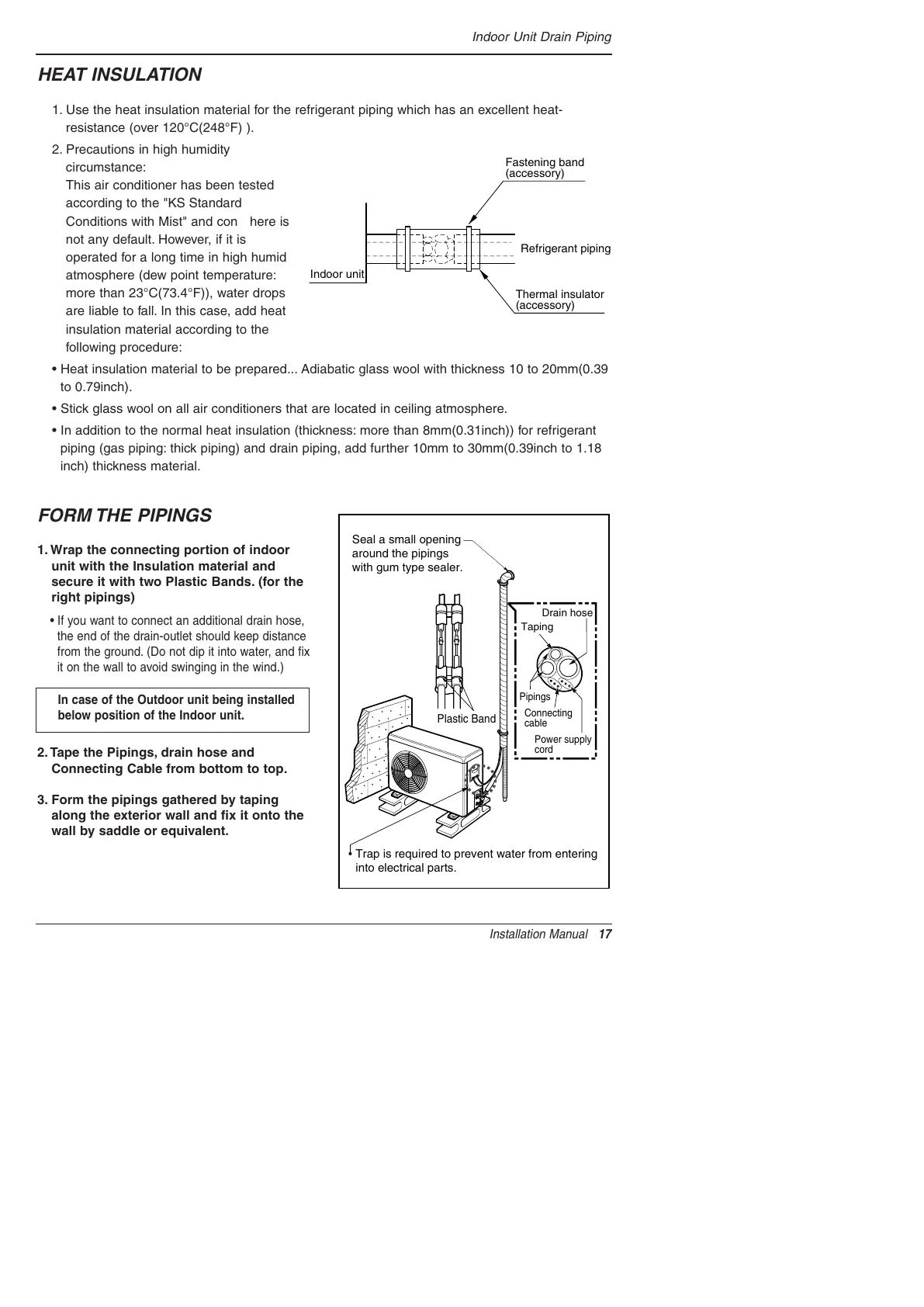 • In addition to the normal heat insulation (thickness: more than 8mm(0.31inch)) for refrigerant