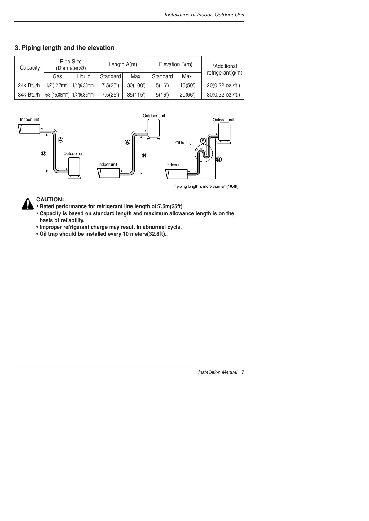• Rated performance for refrigerant line length of:7.5m(25ft)