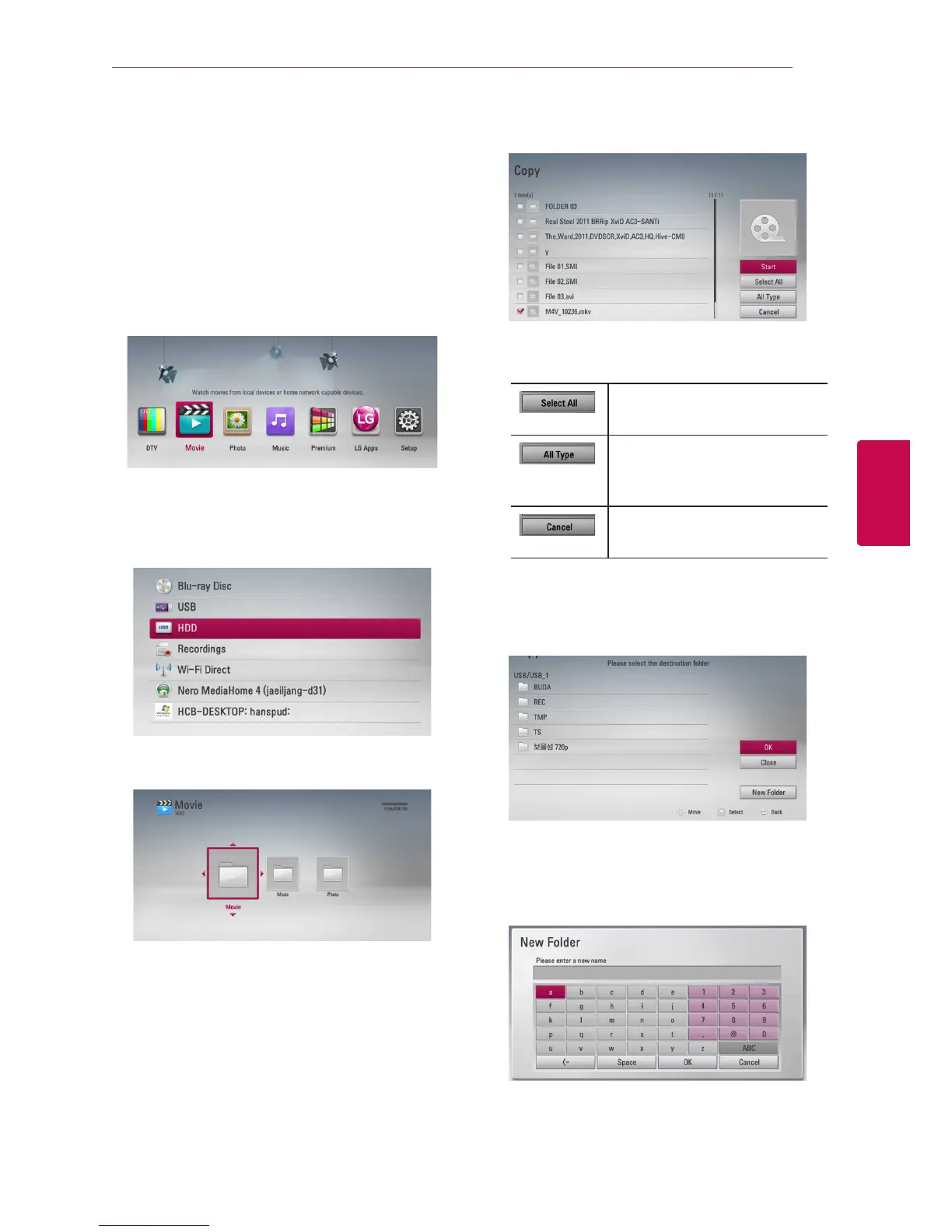 You can copy music, photo, video le(s)/folder(s)