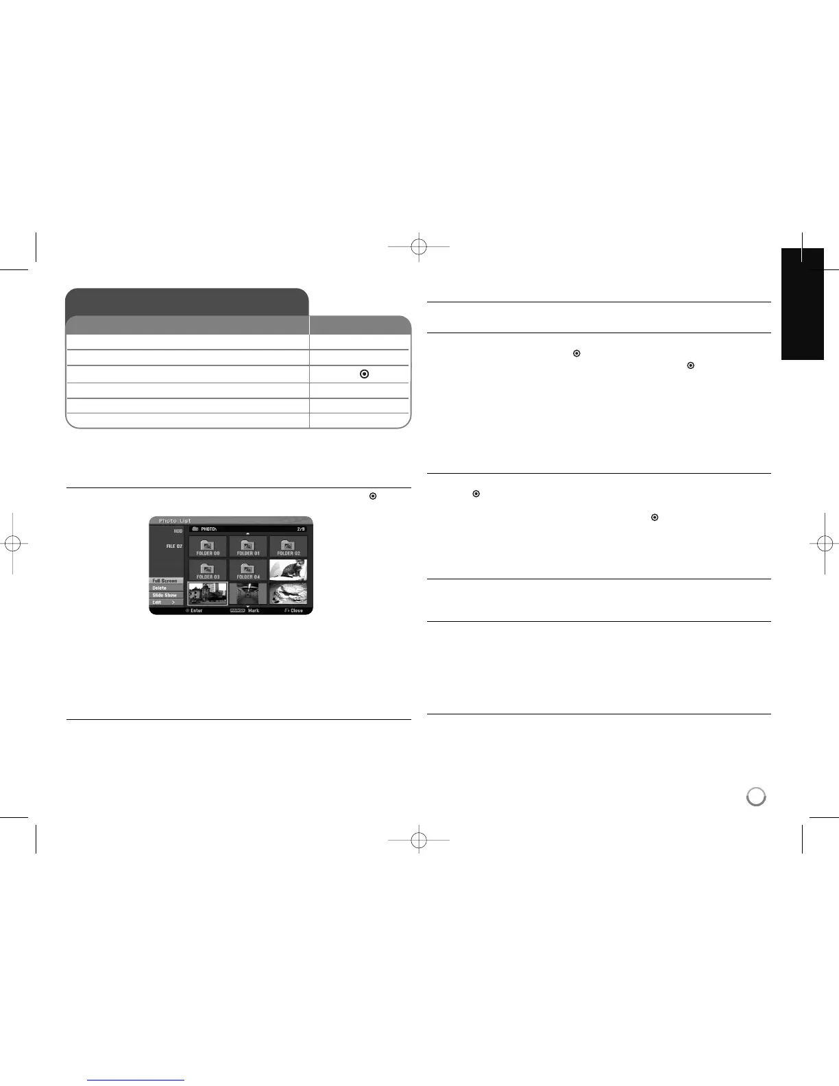 You can slide show photo files while listening to MP3/WMA music files on HDD.