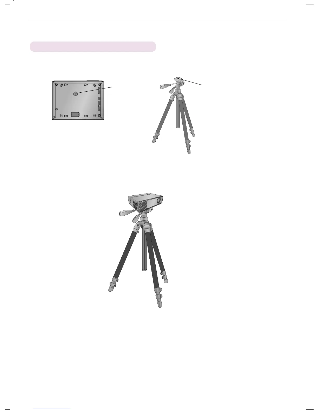 - If you have a camera tripod, assemble the projector to the part connecting to the camera tripod