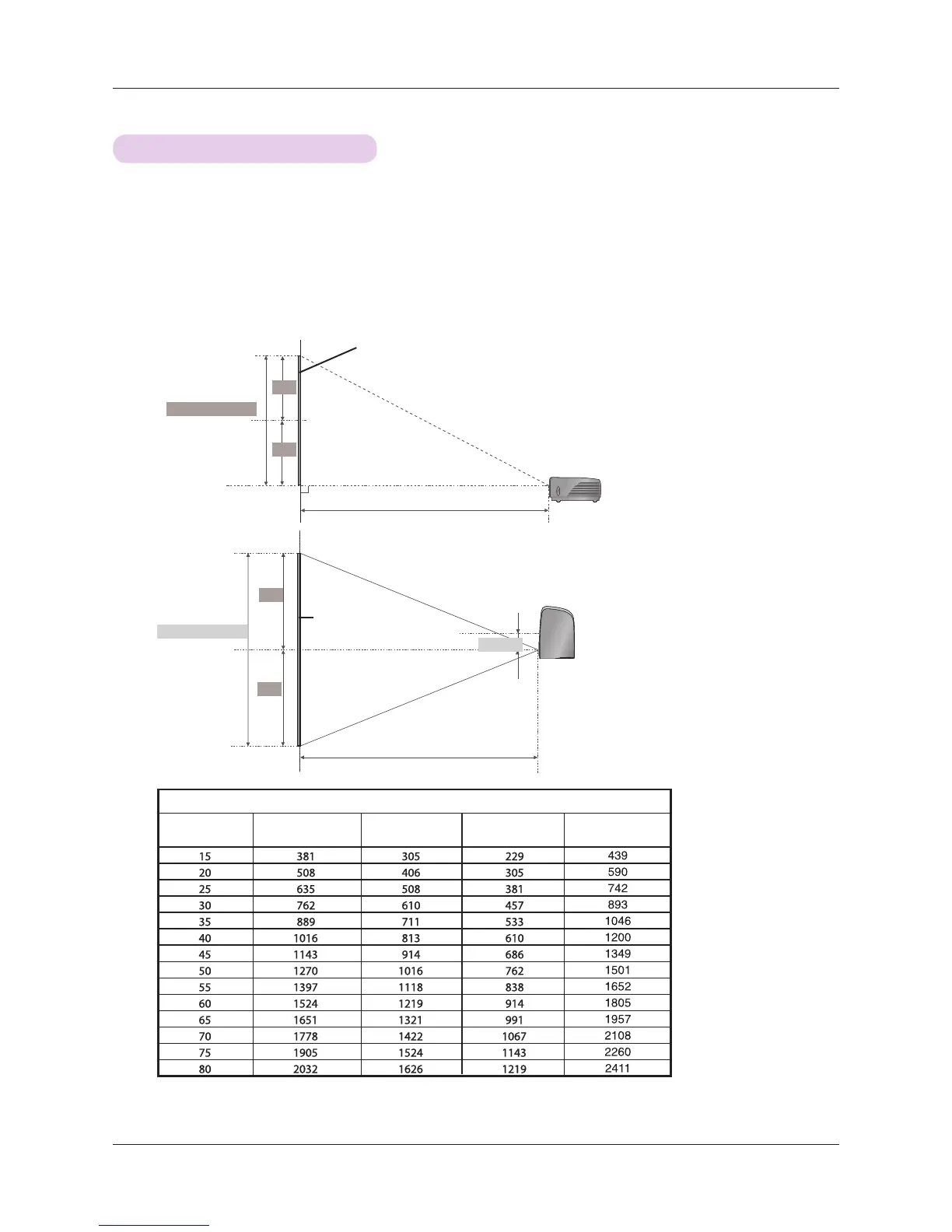 2. Place the projector with the desired distance from the screen. The distance between the projector and the screen