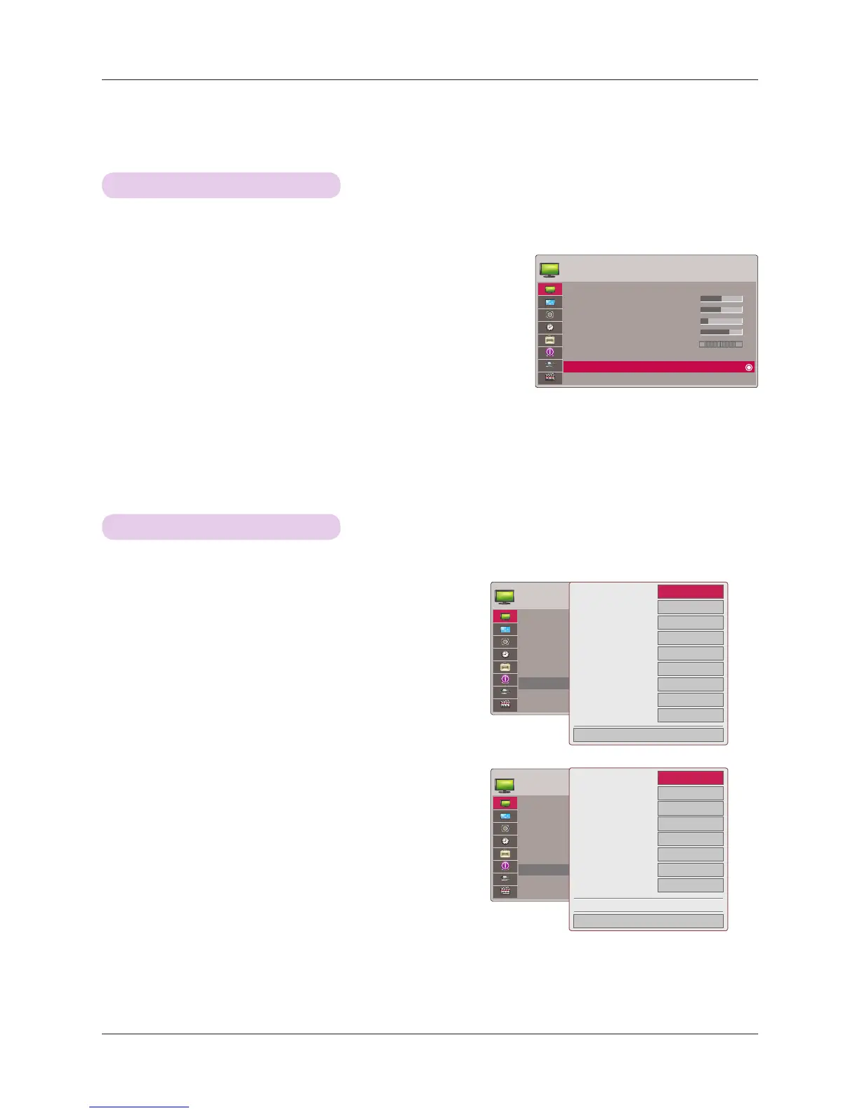 • Execute Reset for Picture Mode to restore back to default factory