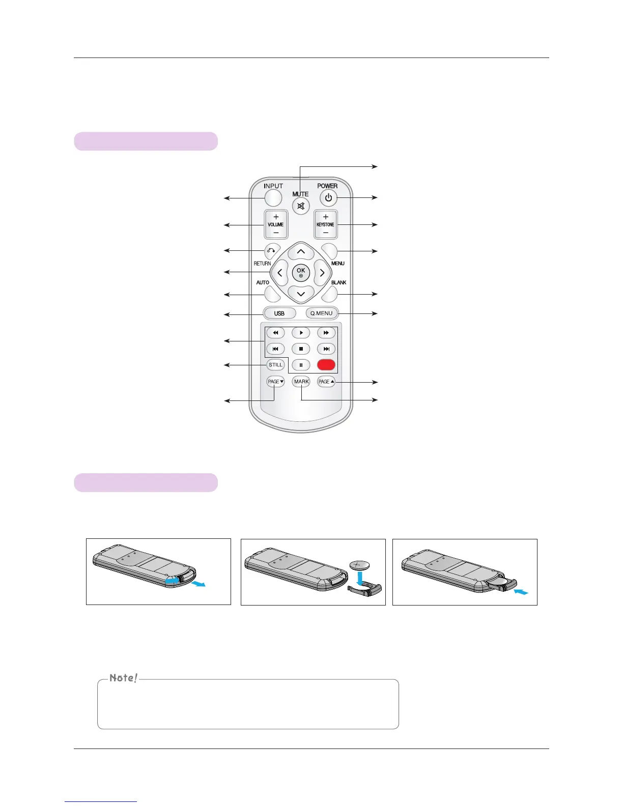 ▪ Remove the battery when not using the projector for prolonged periods.