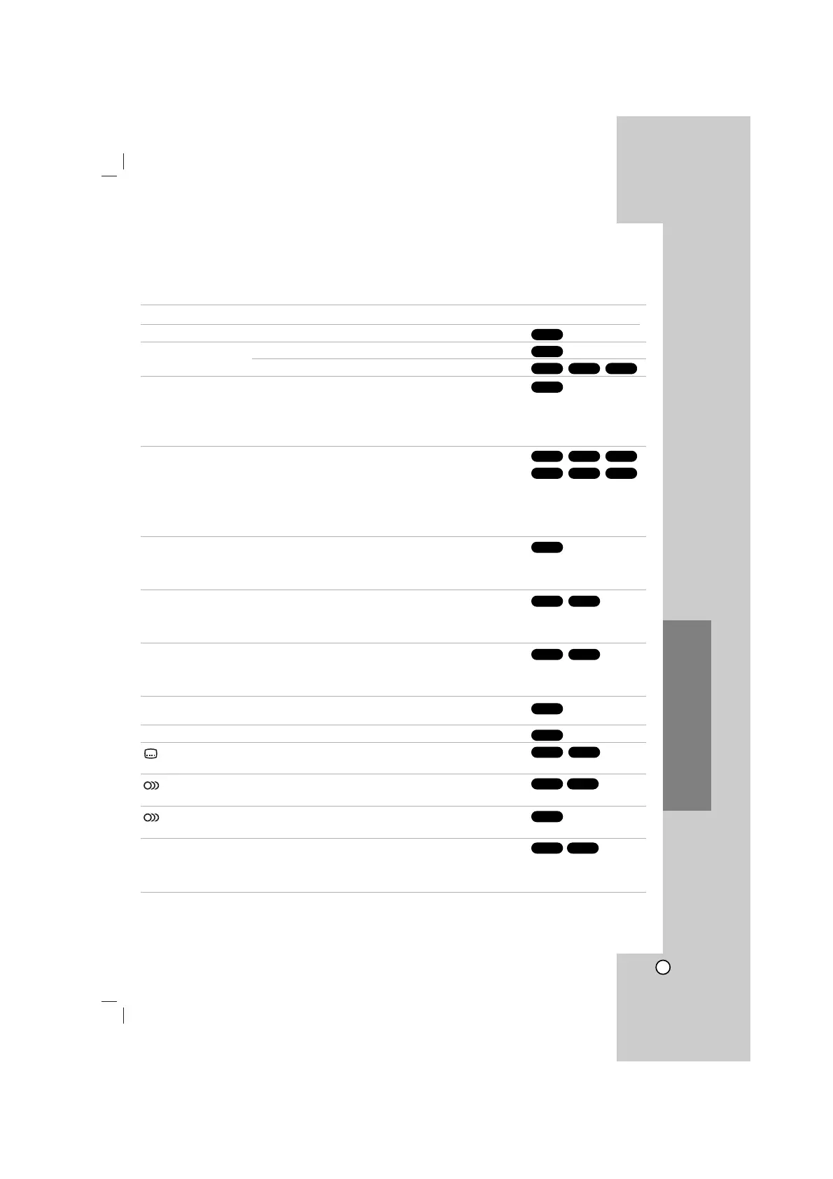 Video CD, Audio CD, DivX/MP3/WMA discs: Track/All/Off
