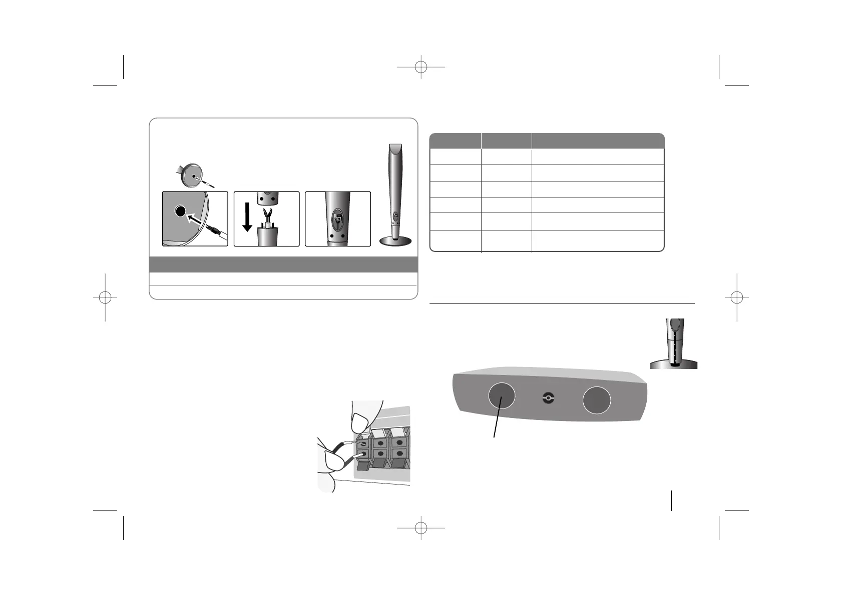 connection terminals on the base of each speaker. Insert the wire and release