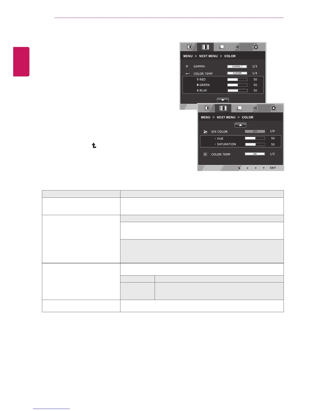 MENU > NEXT MENU > COLOR Description