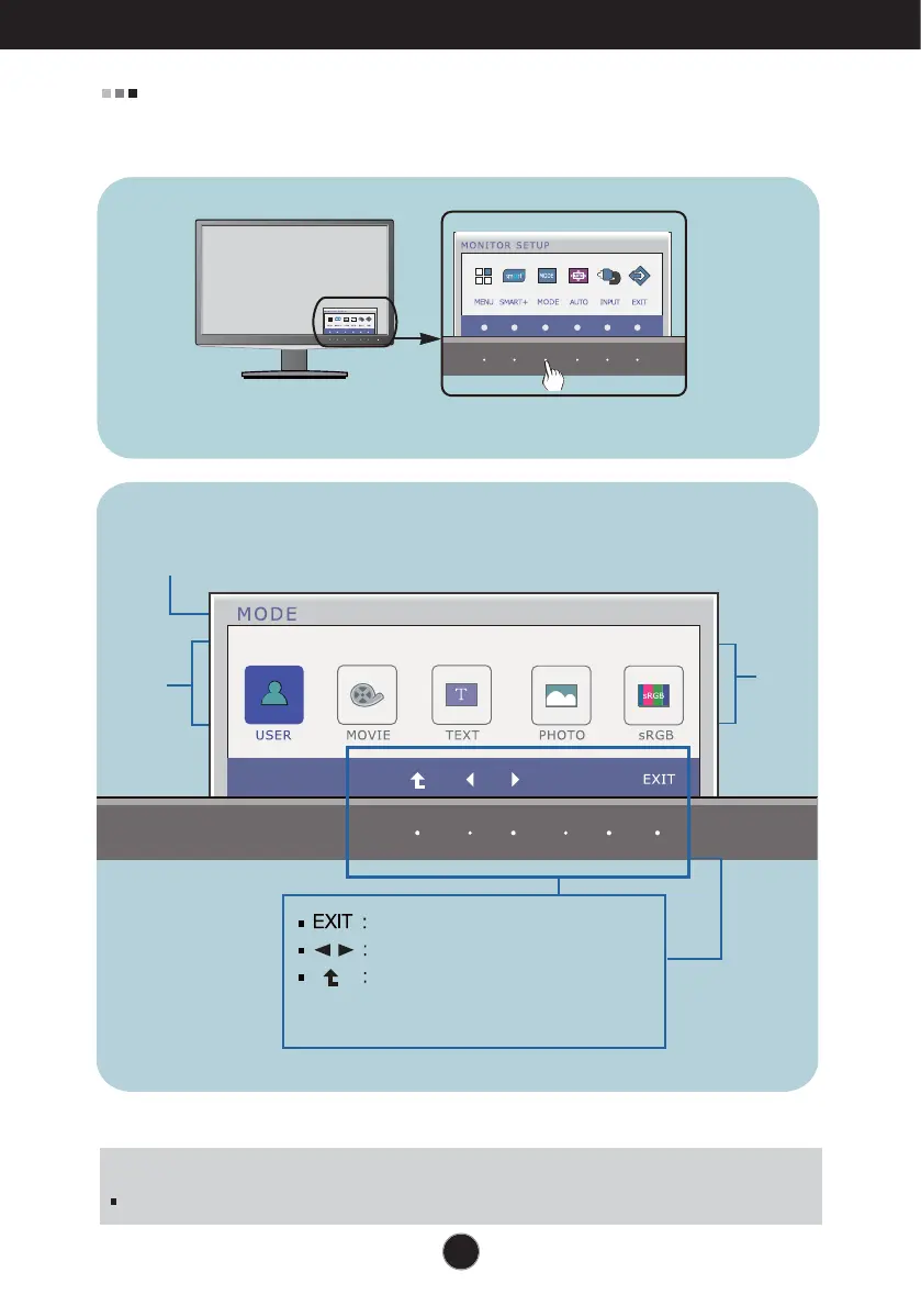 Press the MODE Button, then the main menu of the OSD appears.