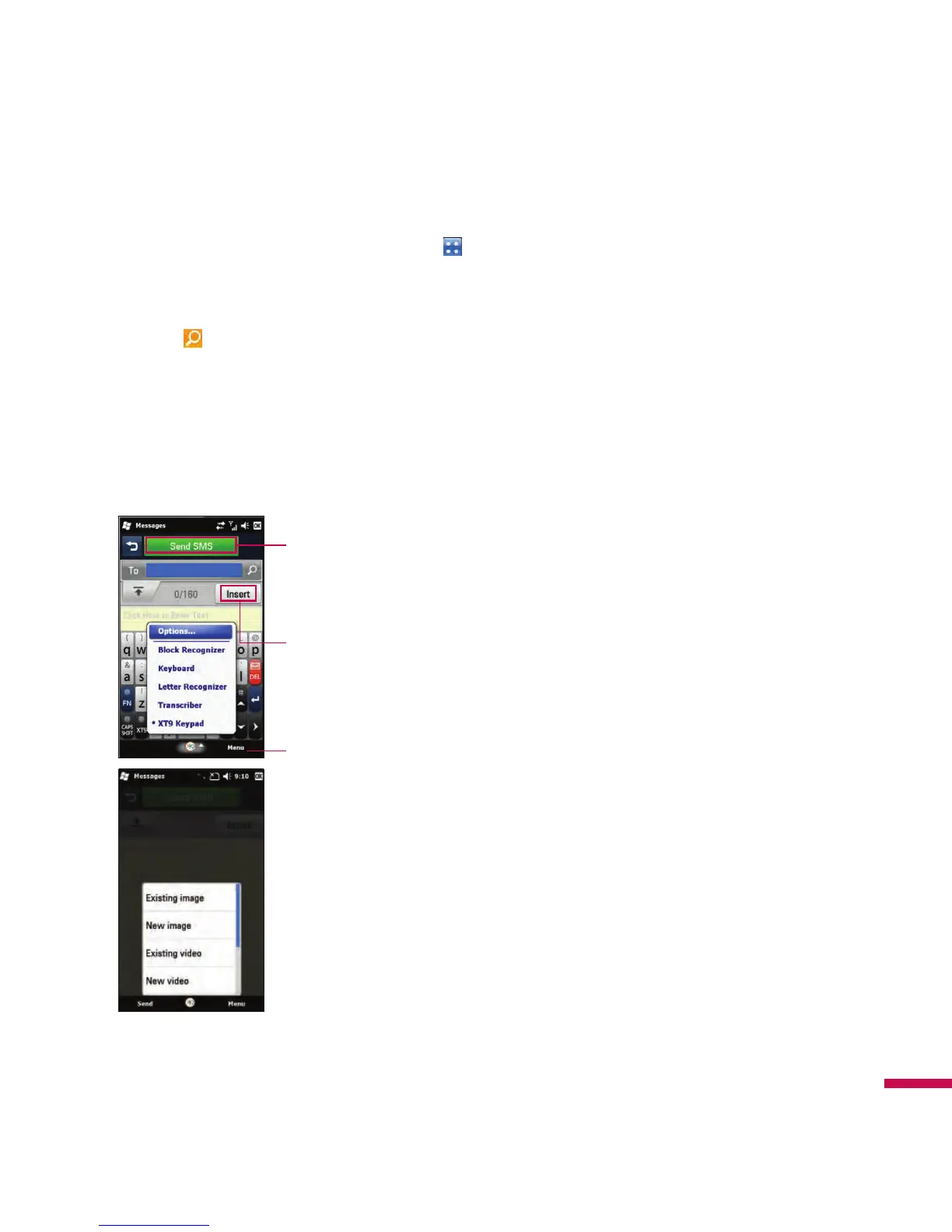 number by touching Menu at the lower right of the message and then selecting Insert Text.