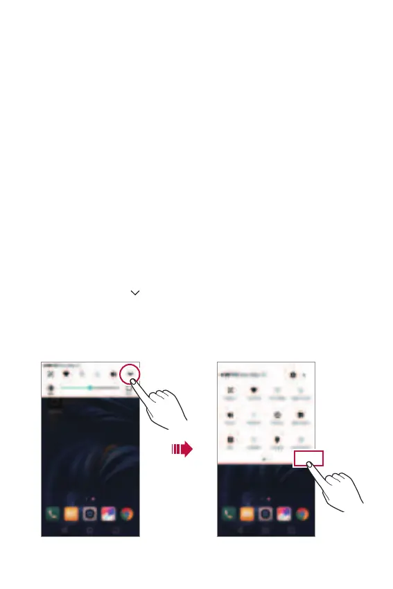To open the quick access icons list, drag the notifications panel