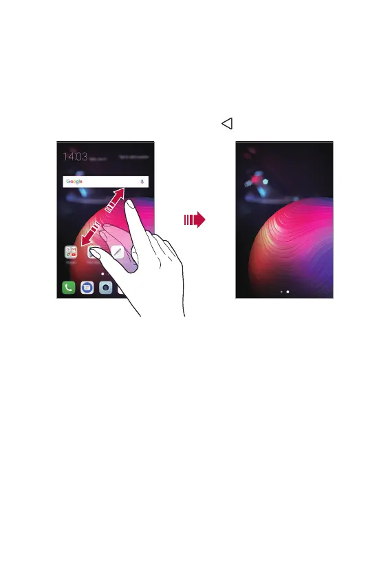 • To return to the original screen, which displays apps and widgets, pinch
