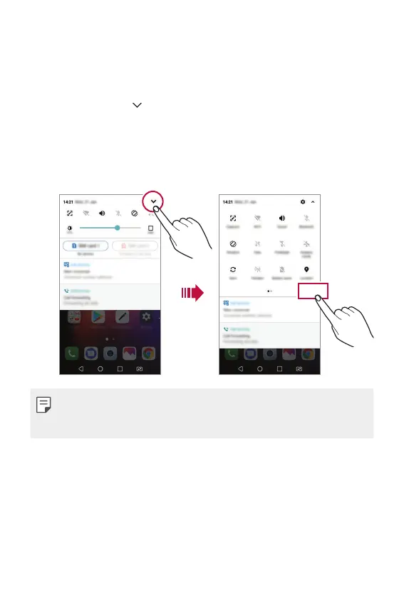 • Untuk membuka daftar ikon akses cepat, seret panel notifikasi ke