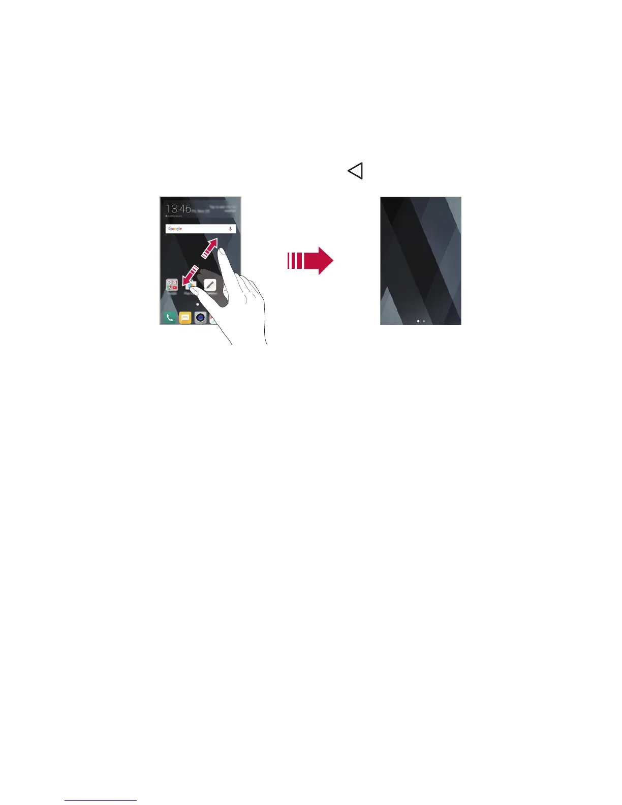 Ţ To return to the original screen which displays apps and widgets, pinch