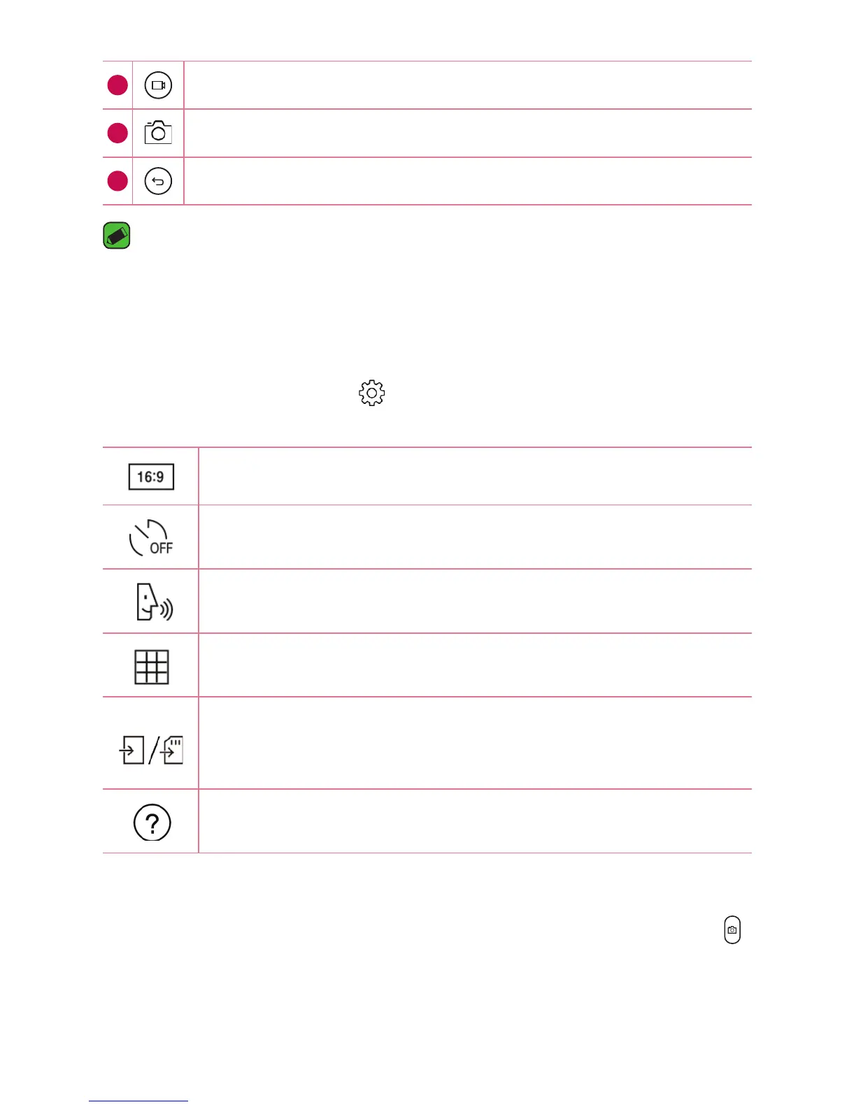 icon to adjust the following camera settings.