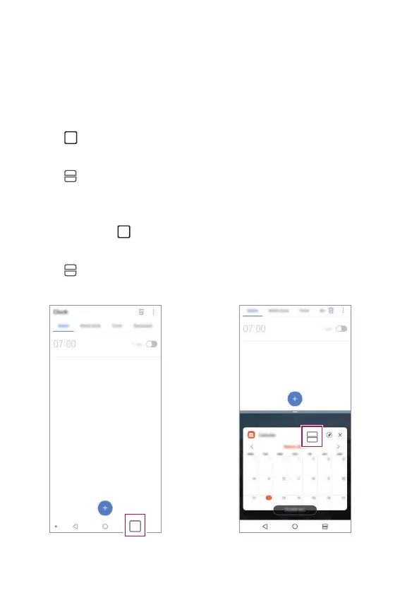 • Recently-used apps appear on the split screen.