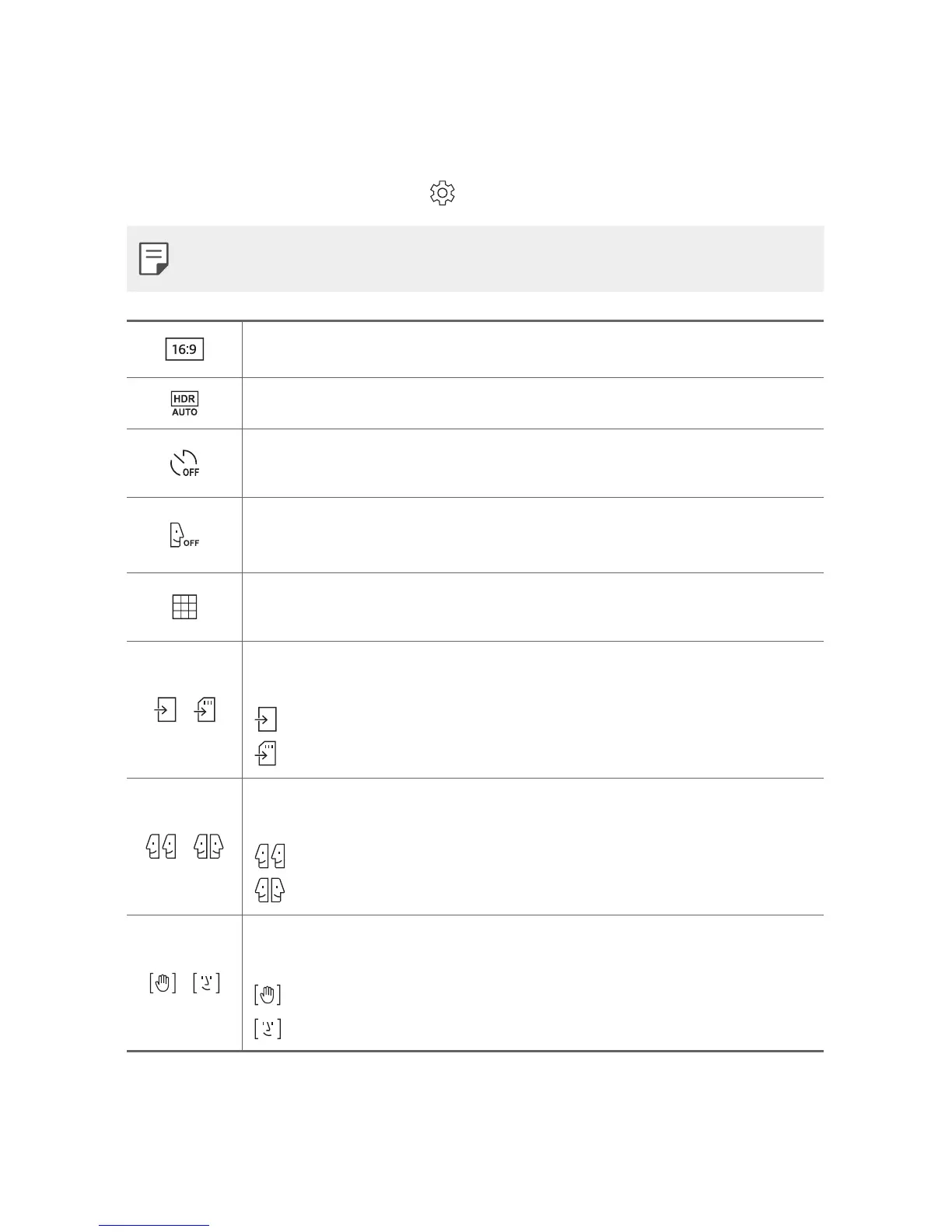 • Available options vary, depending on the selected shooting mode.