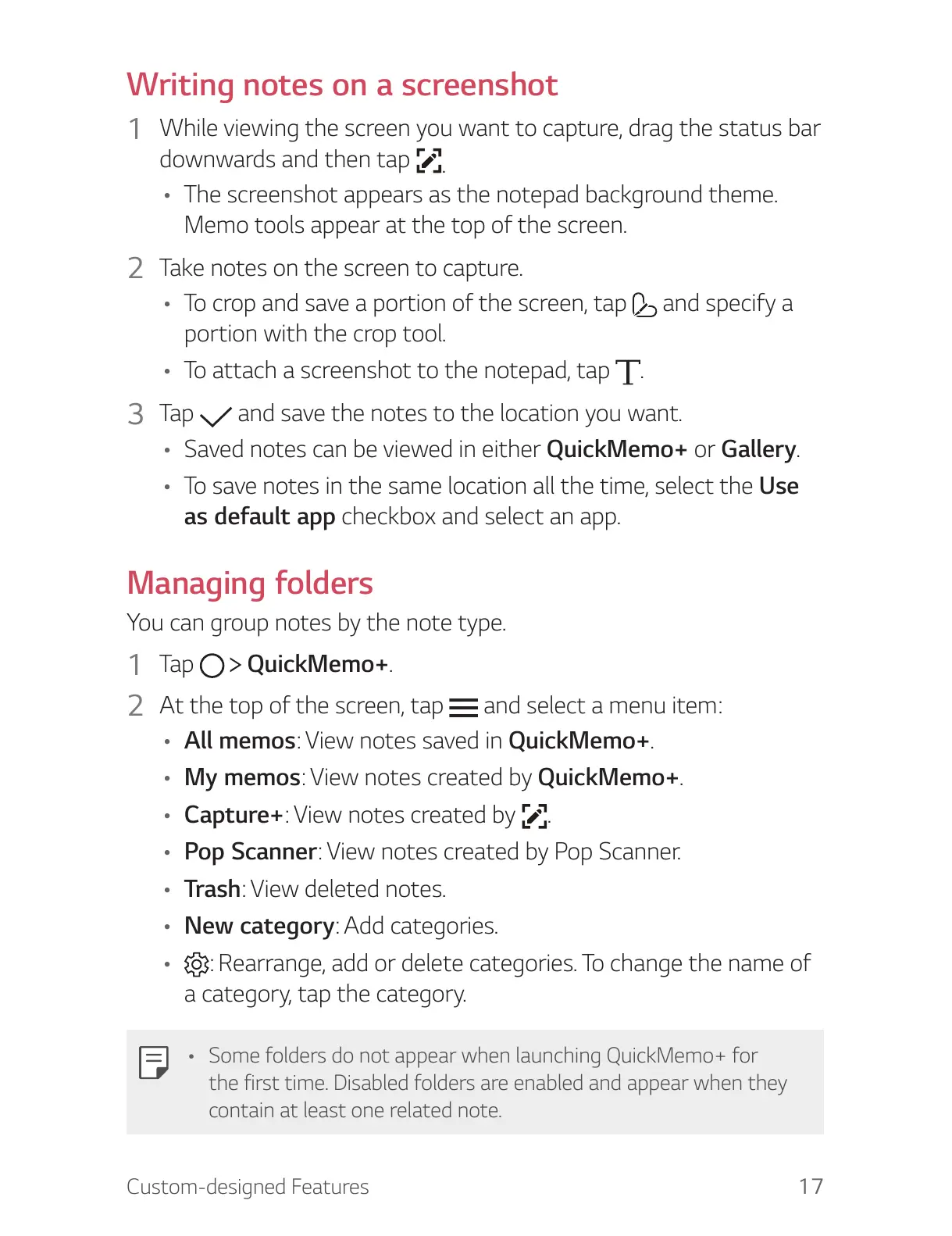 • Some folders do not appear when launching QuickMemo+ for