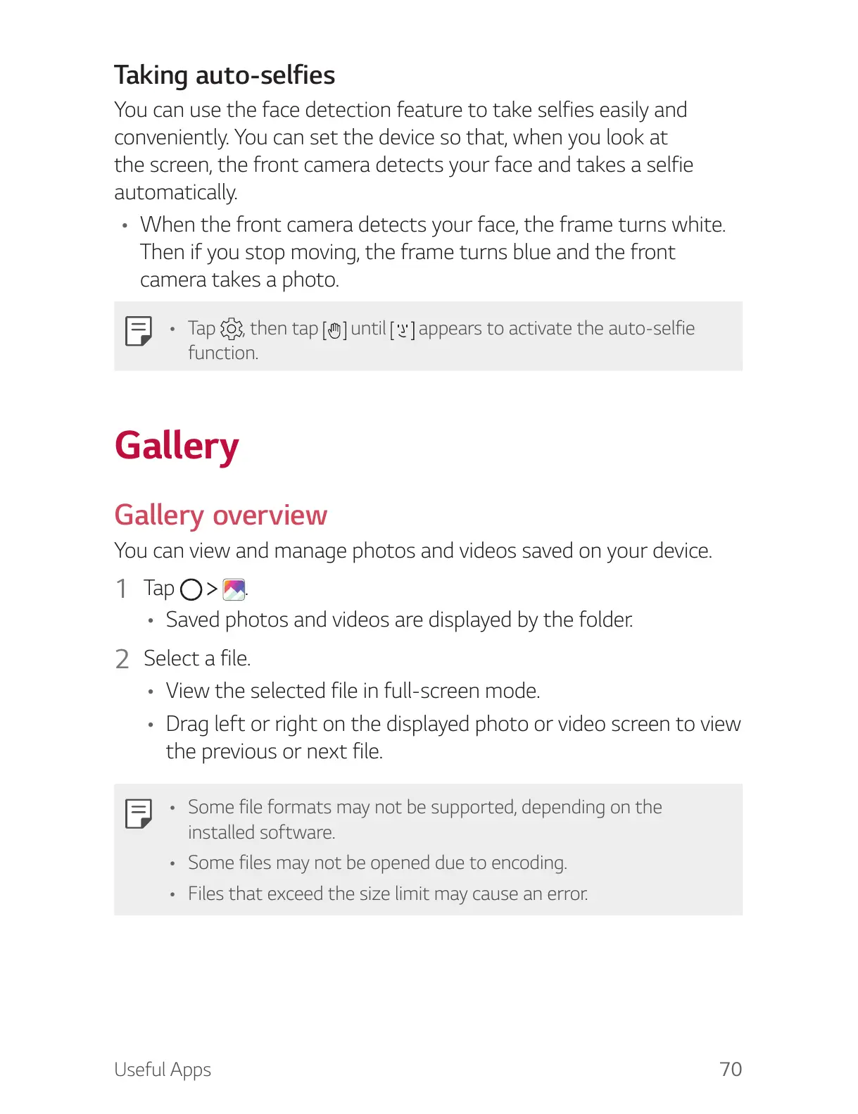 You can view and manage photos and videos saved on your device.