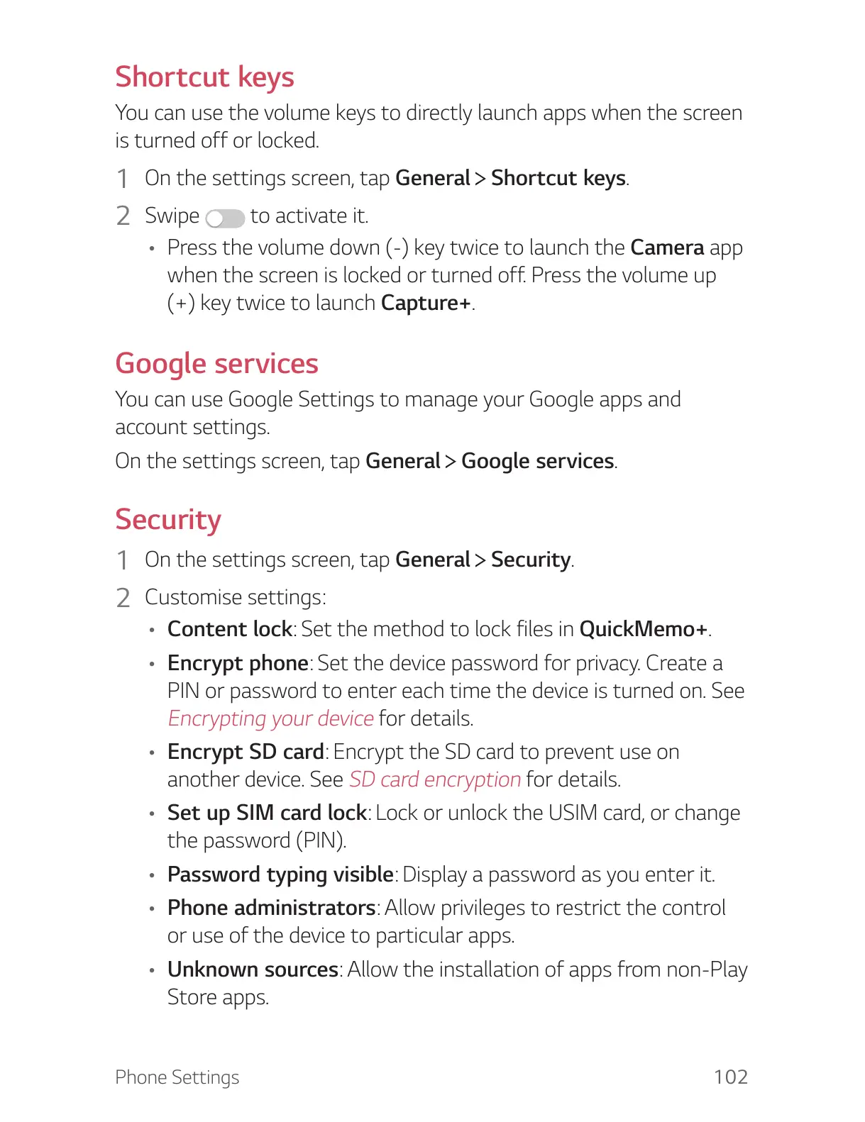 • Encrypt SD card: Encr