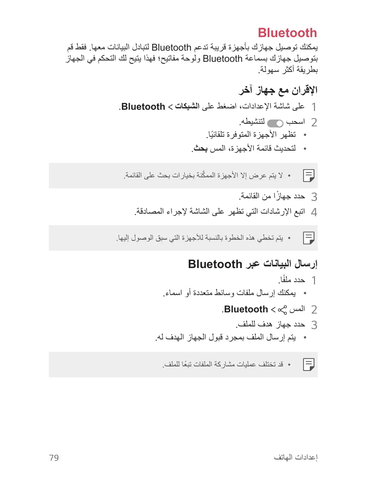 ﻡﻗ ﻁﻘﻓ .ﺎﻬﻌﻣ ﺕﺎﻧﺎﻳﺑﻟﺍ ﻝﺩﺎﺑﺗﻟ Bluetooth ﻡﻋﺩﺗ ﺔﺑﻳﺭﻗ ﺓﺯﻬﺟﺄﺑ ﻙﺯﺎﻬﺟ ﻝﻳﺻﻭﺗ ﻙﻧﻛﻣﻳ