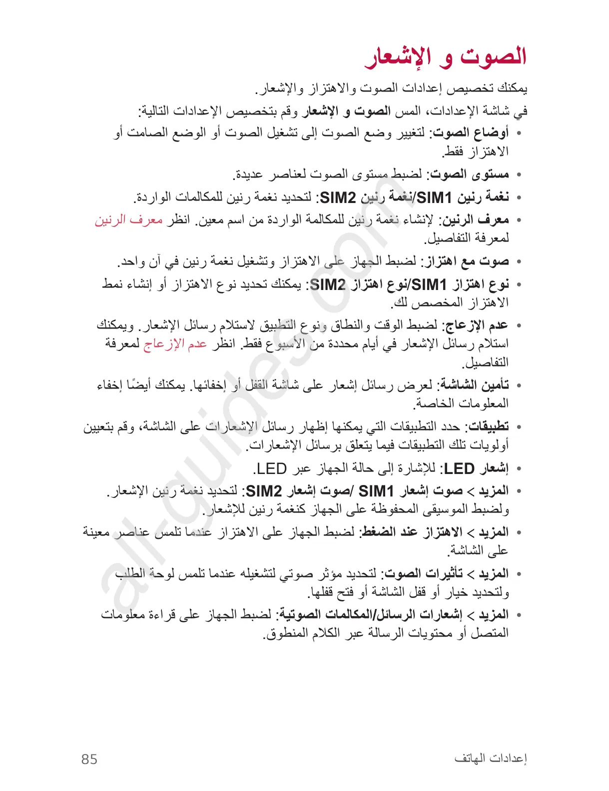 • .ﺭﺎﻌﺷﻹﺍ ﻥﻳﻧﺭ ﺔﻣﻐﻧ ﺩﻳﺩﺣﺗﻟ :SIM2 ﺭﺎﻌﺷﺇ ﺕﻭﺻ/ SIM1 ﺭﺎﻌﺷﺇ ﺕﻭﺻ
