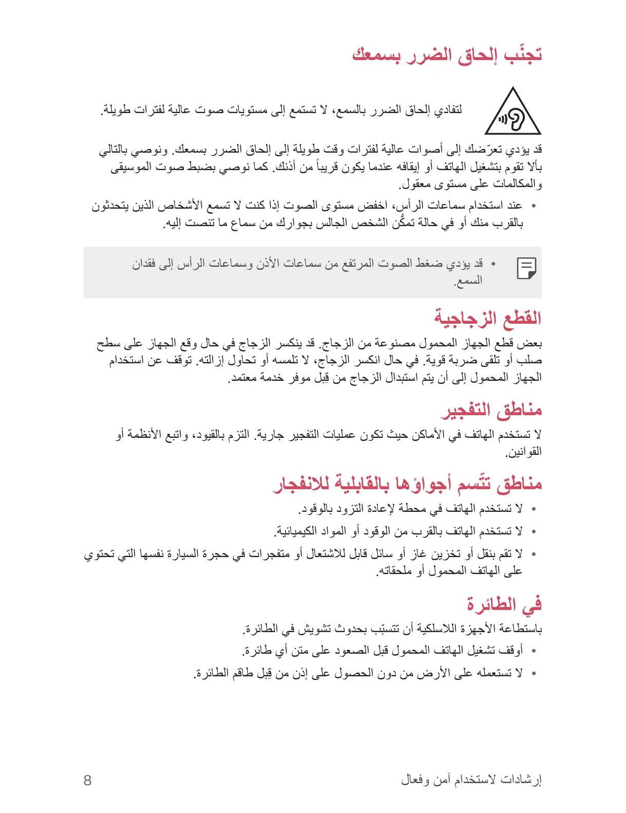 • ﻥﻭﺛﺩﺣﺗﻳ ﻥﻳﺫﻟﺍ ﺹﺎﺧﺷﻷﺍ ﻊﻣﺳﺗ ﻻ ﺕﻧﻛ ﺍﺫﺇ ﺕﻭﺻﻟﺍ ﻯﻭﺗﺳﻣ ﺽﻔﺧﺍ ،ﺱﺃﺭﻟﺍ ﺕﺎﻋﺎﻣﺳ ﻡﺍﺩﺧﺗﺳﺍ ﺩﻧﻋ