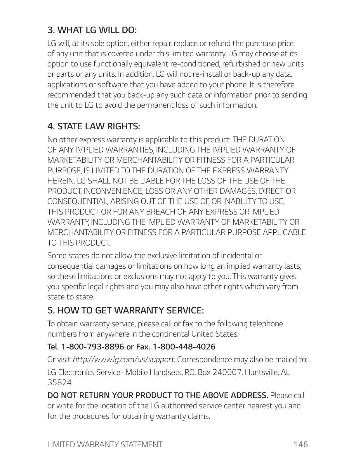 LG Electronics Service- Mobile Handsets, P.O. Box 240007, Huntsville, AL