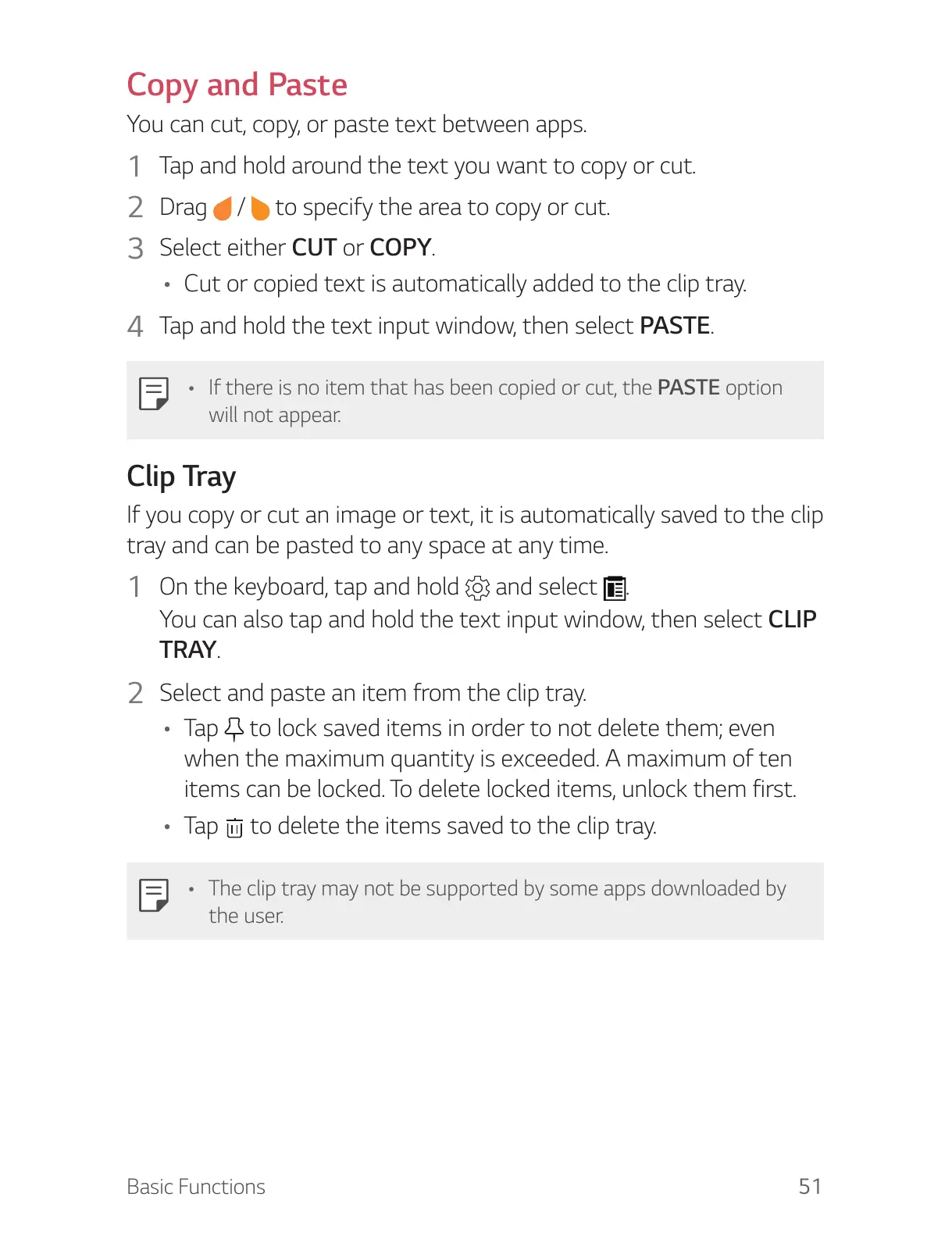 A The clip tray may not be supported by some apps downloaded by