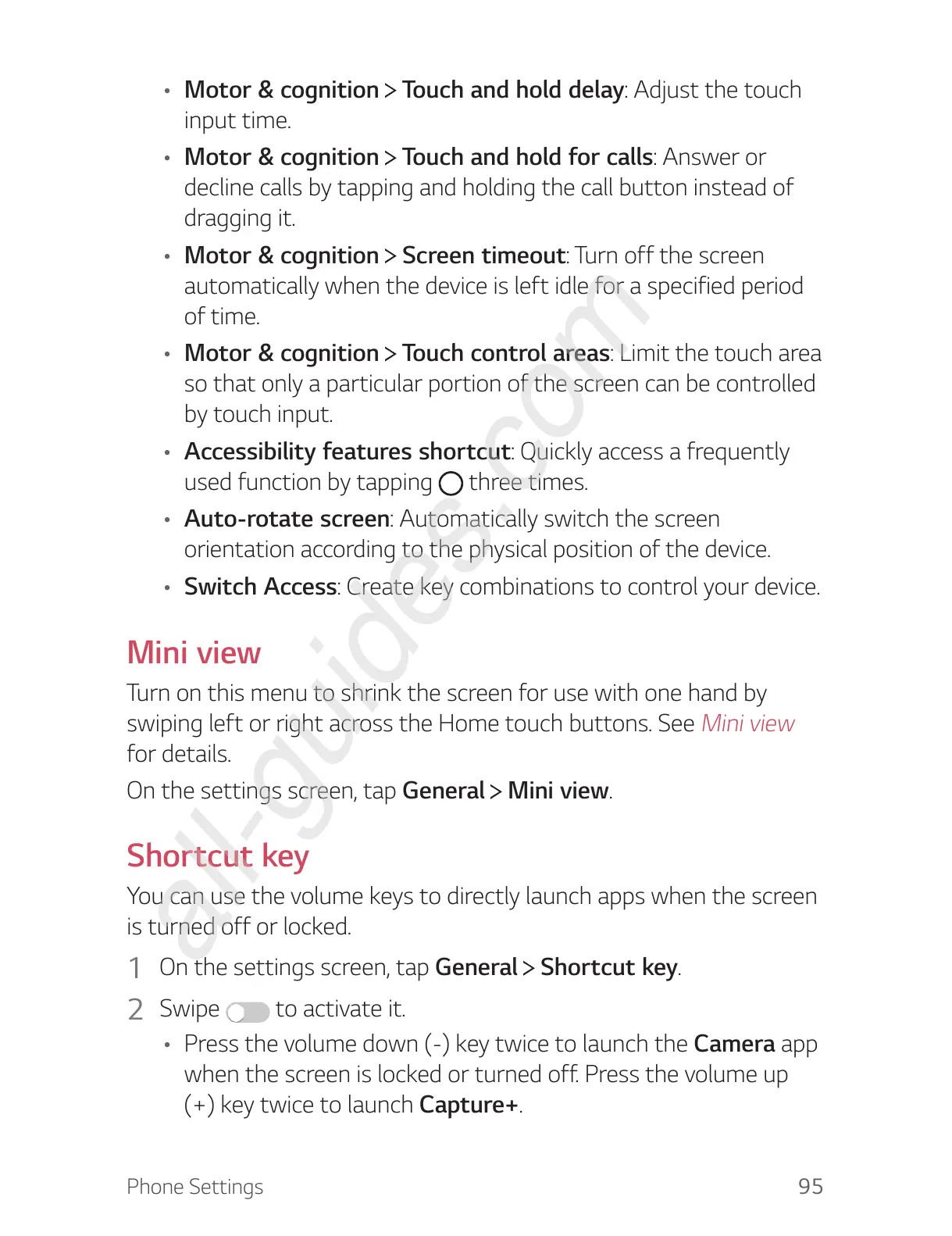 A Motor & cognition Touch and hold delay: Adjust the touch