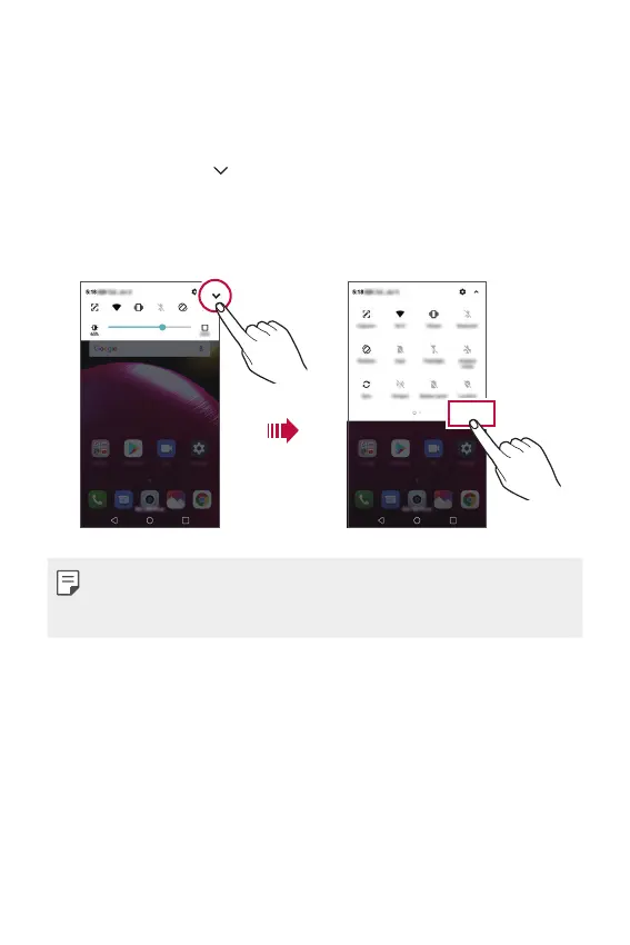 • To open the quick access icons list, drag the notifications panel