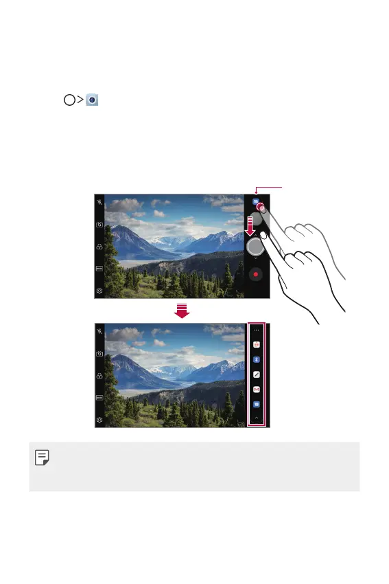 • The app displayed by the quick share icon may vary, depending